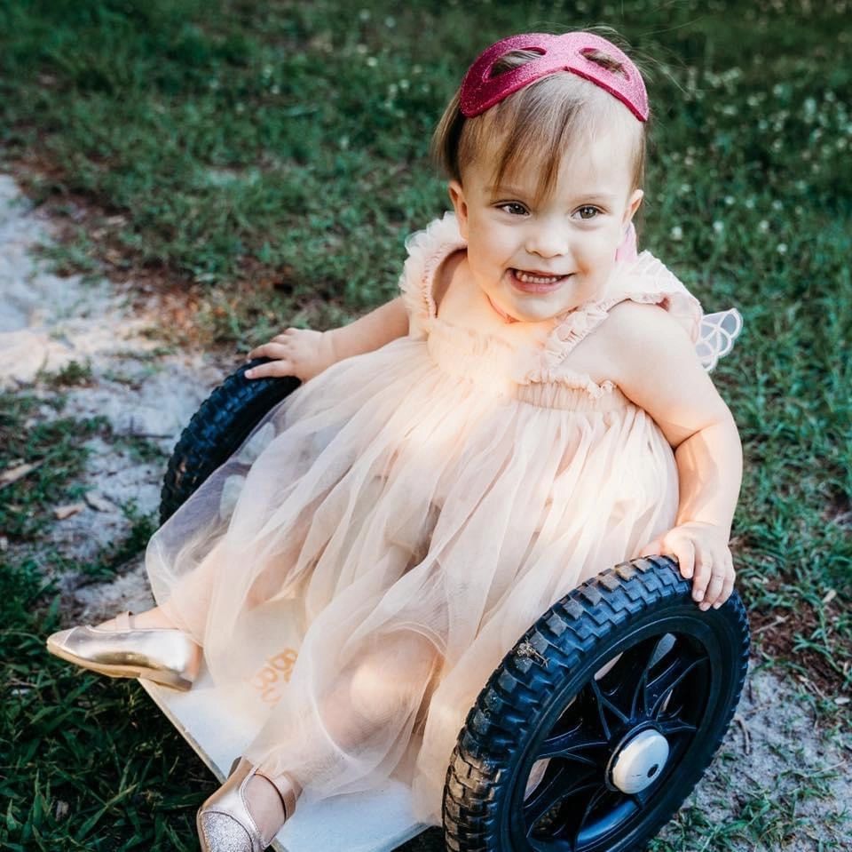 At this point we were still unsure of what this surgery and our life would look like for Tobyn until she was older. About 11 months Tobyn started to use what’s called Bella’s Bumba that looks like a little wheel chair created by another dad in the Spina Bifida community. She started to slowly move around in this. Later on we noticed she had severe pain in her back on her scar to touch as well as to sit down. We found out after an MRI that she had tethered chord and cyst at the base of her spine which is common for babies who have had fetal surgery. On July 1/2022 Tobyn had a 7 day stay in the hospital after her tethered cord surgery, within a few days we noticed a huge difference in her movement and her interaction. Tobyn started to stand and fall with no pain, tumble, roll around, basically all the actions of a typical toddler. She was no longer in fear of falling down, sitting down, or trying to walk. It was a long healing process and though this was a very positive procedure there was a downfall of it all. Tobyn which didn’t have a problem with this before now had to be Cathed every four hours. They say this is something that could come back on her own but we have not seen a full recovery of this yet. Tobyn has had four therapy sessions since her procedure and is trying to walk with her walker more and more. She has what they call AFOS for her legs to help with support of the lower legs that do not have the feeling like other children. Our therapist believes she will not need these long since she is showing signs of feeling in her ankles and feet. September 7th Tobyn had her first follow up at the Spina Bifida clinic at chop since her procedure. The doctor had her try out their walker which is a lot lighter than ours and she just took off in it! She was so happy and felt so confident and independent in this walker. The doctor stated she would be fully walking in 6 months at her next appointment. We are proud to say that in March she was not only walking but running into her doctor appointment!! Tobyn is an absolute angel and touches everyone she comes in contact with. She is always smiling at strangers and giving them a high five or fist bump. She has been an absolute miracle baby!